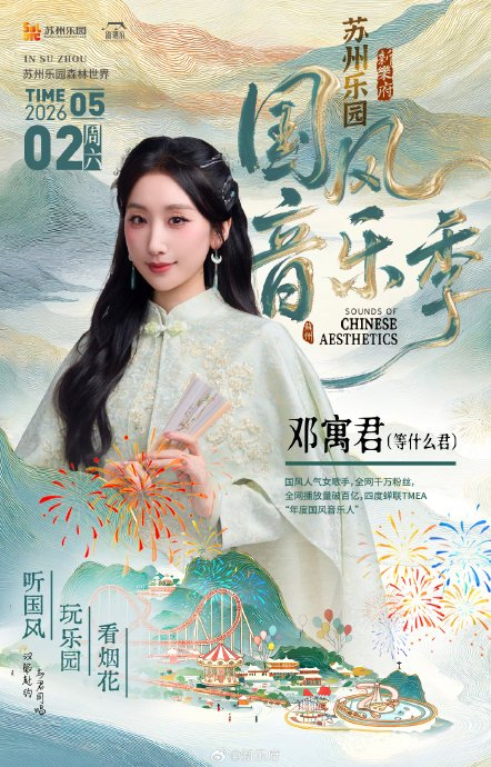 邓寓君(等什么君):全网粉丝超千万的顶流国风音乐人,四度蝉联TMEA“年度国风音乐人”,《关山酒》《归来兮》等作品播放量破百亿,舞台表现力极具感染力。
