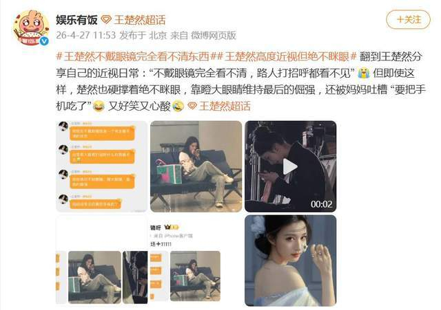 据网友4月27日爆料,王楚然分享了自己的近视窘境,她直言:“不戴眼镜完全看不清,路人打招呼都看不见。”更让人没想到的是,为了维持荧幕形象,这位姐硬是撑着一双大眼睛,坚决不眯眼,靠瞪眼聚焦维持最后的倔强。