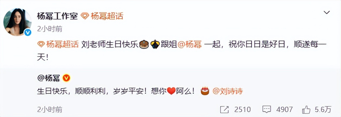 随后,杨幂工作室转发该生日贴文,并配文:刘老师生日快乐,跟姐@杨幂一起,祝你日日是好日,顺遂每一天!