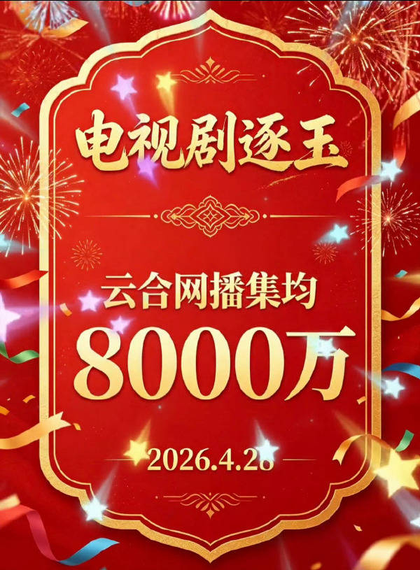 《逐玉》4月28日全网集均播放量正式突破8000万大关,成为2020年云合数据改版后首部达成此成绩的女频剧,也是2026年唯一集均破4000万的剧集,以断层优势领跑市场。