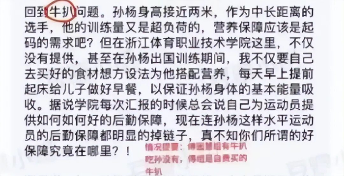 就因为傅园慧父母给女儿自费买了牛排,孙杨妈妈得知后,就发了千字长文大闹,指责游泳队区别对待。