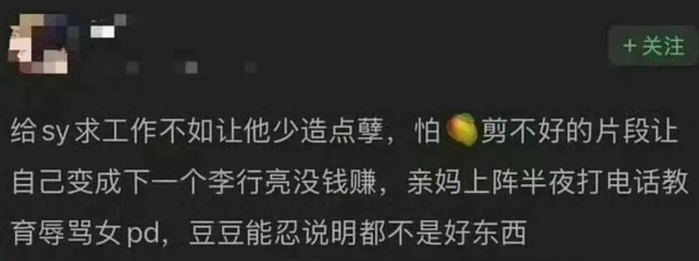 之前孙杨社媒评论区都是吐槽他对妻子张豆豆的态度,如今孙杨社媒评论区变成了吐槽他妈宝——有人求他退出真人秀,有人让他管管自己妈,还有人直接开骂。