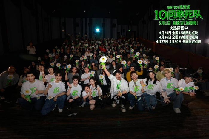 即将于5月1日上映的《10间敢死队》近日举办“勇敢活!放肆笑!”全国首映礼。影片编剧、导演陈思诚,领衔主演蒋龙、齐溪、杨超越、王子川、张弛、曹炳琨、黄毅、叶泉希,特别主演蔡明、田雨、丁嘉丽亮相映后,向观众零距离输出“喜剧全家桶”能量,用真诚对话勾勒出最动人的“向阳而生”图景,多位重磅嘉宾与影人好友也现身安利。影片将于4月25日开启12城限时点映,4月26日扩大为38城点映,4月27日-30日每晚全国点映,5月1日全国上映。