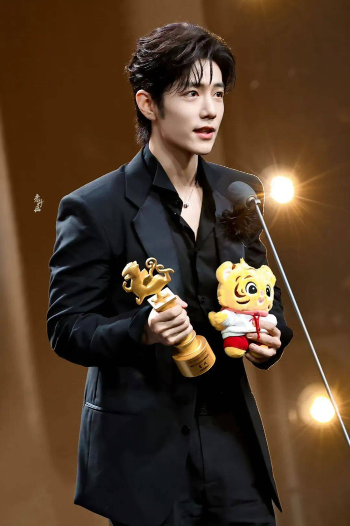 倪萍宣布获奖者时,全场大学生齐呼“肖战”;他登台时眼眶湿润,坦言“第一次参赛即获奖,非常激动”。