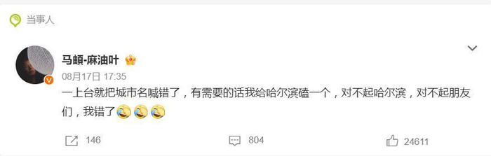 比起愤怒,网友们的反应更多是“笑不活了”。有人调侃:“建议下次去石家庄演出时喊‘你好哈尔滨’作为补偿。”还有人玩起地域梗:“哈尔滨人没刷到道歉,石家庄人全刷到了。”更有网友联想到张雪峰的名言:“演出太多,每天醒来第一件事是确认自己在哪个城市。”