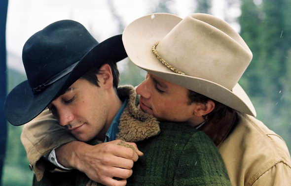 《断背山》根据美国作家安妮·普劳克丝的短篇小说改编,背景是美国怀俄明州。讲述了两个美国牛仔相爱,却迫于社会压力结婚生子,他们从年轻演到中年,彼此的感情牵扯长达20多年,部分娱乐媒体更直接以“西部同性恋史诗”称呼本片。图为断背山剧照。