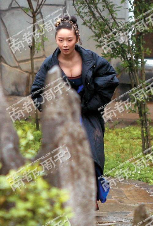 扮演陈瑾的女儿,李曼似乎和陈瑾的交流并不多,反倒和贾二格外亲热,两人有说有笑,一到拍工作照两人更是亲密地搂着肩,似乎剧里倒多了点情节——贾二成了李曼的父亲。传说中的黑衣女侠陈瑾在驿站露面的时候竟然穿了件金色的衣服,差点让人误以为是皇后巩俐的替身。这也难怪,大白天穿件夜行衣,那不立马暴露自己身份了?陈瑾非常敬业,每次上戏之前还会仔细检查自己的戏服有没弄好,鞋带有没系好。然后才提着裙子小心翼翼走到场地中和倪大洪对戏。他俩的对白特别多,陈瑾不时还有些面带怒色,似乎在斥责什么。