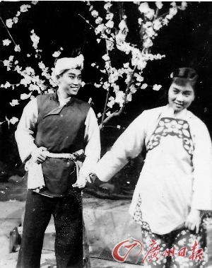 1953年歌剧《小二黑结婚》剧照,张目饰小二黑,谢芳饰小芹。