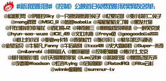 1)关注@新浪电影[微博] @电影控制[微博]并转发以下微博说出你对本片的期待。
