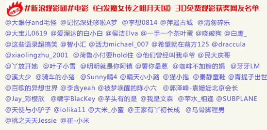 1)关注@新浪电影[微博] 关注@电影白发魔女传之明月天国[微博] 并转发以下微博写下你对影片的期待。http://weibo.com/1623886424/Bf32Htk0S