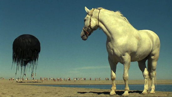 海边的幻想和最后马戴尔坐在盐池边目睹自己出生的两段梦境也凭添了很多诗意,很多细节还能一撇急剧变化中的意大利社会暗流涌动的不安:一个那不勒斯人站在天台高喊着“对!我就是小偷!凶手!强盗!”举枪威胁要拿到100万;地铁的角落里,老马被一个年轻的小伙子持刀抢劫……