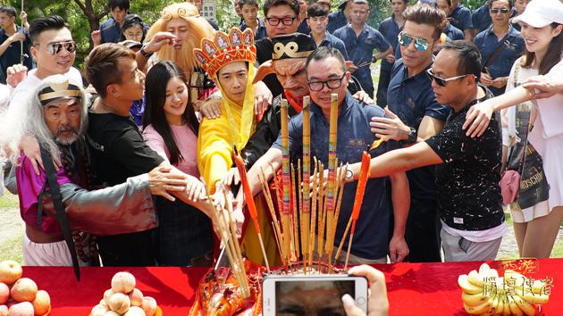 6张新浪娱乐讯 由美亚娱乐、鹏程兄弟(深圳)文化传播、北京七祖影业、深圳知道文化传媒和熙王朝文化传播联合投资拍摄的2017年度网络奇幻喜剧大电影《西游之净坛使者》于7月11日在英德正式开机。