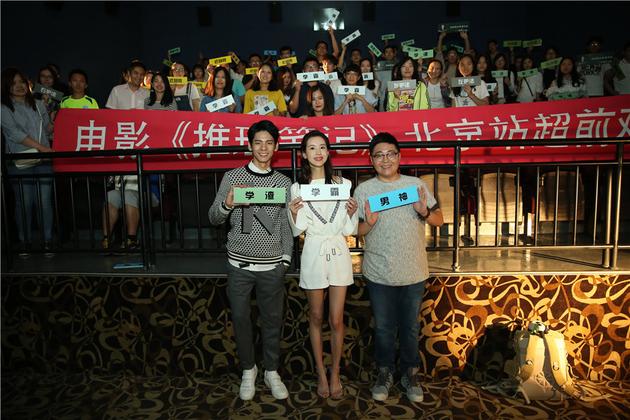 除北京的艺人互动专场外,电影《推理笔记》还在全国18个城市大规模同步举办超前观影活动,辐射百余所高校学生,场场爆满,引发口碑好评热潮。有理工男看片后兴奋地表示,“大数据杀人很恐怖,影片上映后我会带女朋友来看,她看完应该会停止剁手网购。”这次换女生们走了一次肾,“林柏宏扮演的热血“重机”少年和汪铎扮演的高冷理性学霸,这两种类型的男生在校园里都是非常受欢迎的,有腿有智商。”对于推理内容本身大家也一致好评,“推理层层递进,真相就像打开俄罗斯套娃一样,结尾大反转出乎意料,后劲十足。”