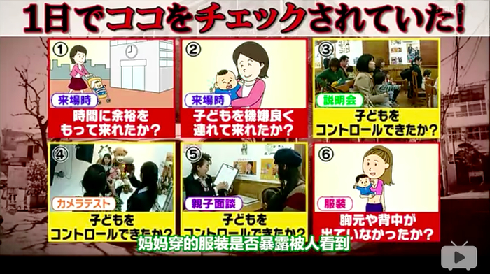 书面审查大概会淘汰四分之三左右的人,紧接着的审查,主要考察考察小孩的表情和举止,如果小孩哭了、反应迟钝或不能安静,会被淘汰。最后环节的亲子审查的对象其实是小孩的家长,主要为妈妈,看家长是否能够管理孩子将来的工作安排,衣着是否暴露也成为审查标准之一。