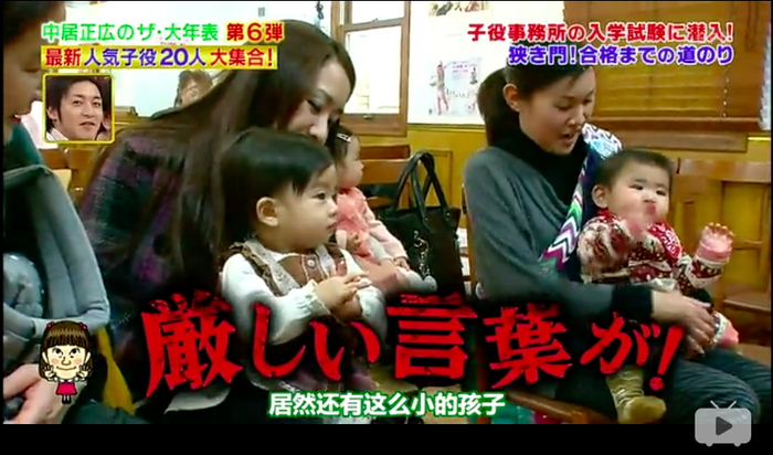 虽然子役事务所数量开始变多,但是选拔标准还是非常严苛的。流程一般是:书面审查、照相测试演技审查、亲子面谈。报名的子役年龄要在15岁以下,几岁以上呢?日本的一个节目里,曾出演过日剧《萤之光2》的石井在7个月的时候就进事务所了。