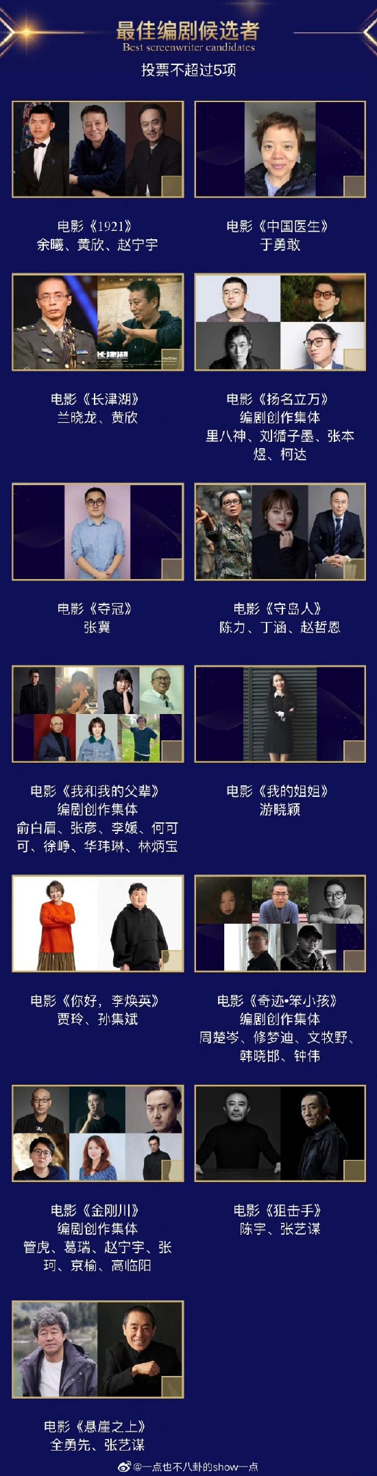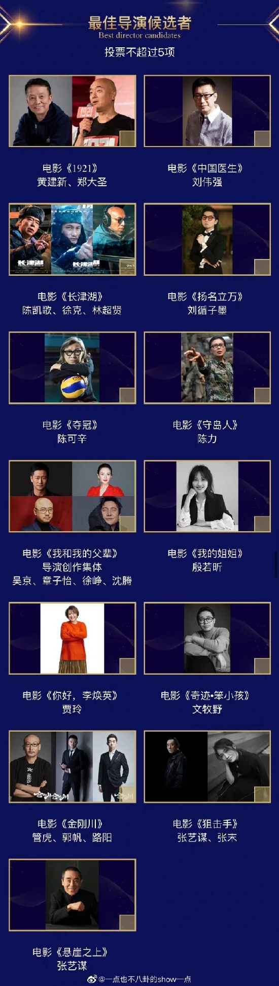 大众电影百花奖启动投票 男女主角候选名单曝光