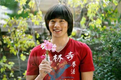 近来韩国偶像派男星“扮丑”成风。张东健在《台风》中满脸疤痕、胡子拉碴;Rain在《这该死的爱》中穿着破破烂烂。权相宇为了证明自己的演技,也开始大胆自毁形象。继在《野兽》中选择野蛮邋遢的路线后,又在《青春漫画》中剪了个类似成龙的上世纪80年代式锅盖头,土气十足,很有喜剧效果。而权相宇所穿的功夫服上印着的“少林寺”字样,相信会让中国的观众倍增亲切感。