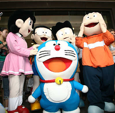 《哆啦A梦》首映 男女老少争相和机器猫合影