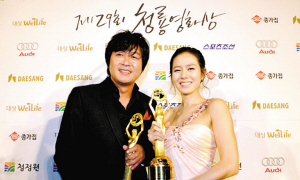 金允锡凭《追击者》获影帝。曾在电影《老千》中扮演反面角色的金允锡,可以说创造出了史上最恶的反面角色之一,因此他也被评价为最具实力的演技派演员。不过他在影片《追击者》中却来了个大变身,他不再是无恶不作的“坏人”,而是变成了追击杀人魔的追击者忠浩,向全新的角色发起最有力的挑战。