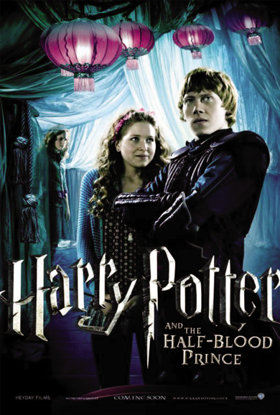 在《哈利·波特与混血王子》中,哈利迎来了他在魔法学校的第六年。整个魔法世界都被伏地魔归来的恐惧所笼罩,而身份难辨的斯内普终于如愿以偿地当上了“黑魔法防御术”课程的老师,继续“折磨”哈利。不过,哈利最头痛的还是魔药课,好在他在旧课桌里发现了一本主人为“混血王子”的旧魔药课本,从此成为这一课程的尖子……跟以前不同的是,已经情窦初开的主角们在这一集里除了忙于学习,还忙于更公开地谈恋爱———最新几款海报便集中体现了哈利、赫敏、罗恩等人的“罗曼史”。