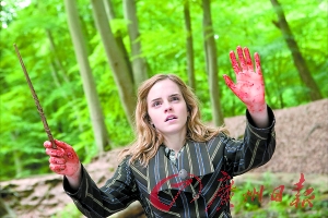 本报讯 《哈利·波特》系列电影的第七部——《哈利·波特与死亡圣器》日前又曝光了一组正式剧照。在这套剧照中,出现了“铁三角”与敌人搏斗的场面、哈利·波特与海格飙车、赫敏满手鲜血地施展魔法以及哈利·波特与金妮的亲吻场面等。
