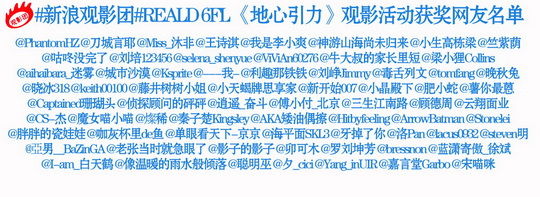 观影后24小时内请到【影视打分】《地心引力》页面打分并在【评论内容框】中提交140字以上观后感,格式为:@新浪电影 @RealD_3D +你对6FL高亮度效果的观影体验。