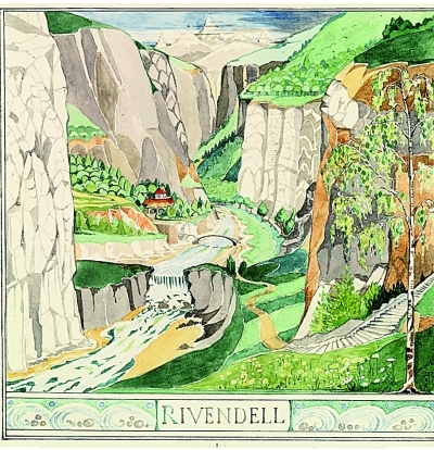 托尔金画稿《幽谷》时隔整整一年,《霍比特人》电影回归。继《意外之旅》后,《霍比特人:史矛革之战》于2月21日登陆国内各大院线,一场新的中洲视觉盛宴再掀风潮。近日由世纪文景出版的《〈霍比特人〉的艺术》一书首度披露了史诗大片《霍比特人》《指环王》视觉设计源泉,解读原著作者托尔金创作《霍比特人》心路。书中包含托尔金为《霍比特人》绘制的全部插画。