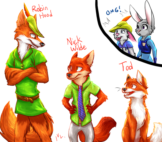 其实呢,狐狸的形象源自迪士尼1973年的动画片《罗宾汉》,并且是其中的主角。这一说法也得到了导 演本人的证实,他表示自己童年最喜欢的电影就是《罗宾汉》。