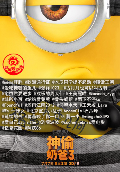 新浪观影团电影《神偷奶爸3》IMAX3D版免费抢票