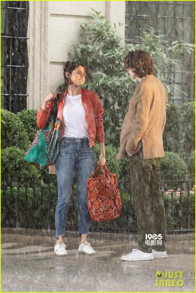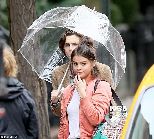 5张1905电影网讯 在《摩天轮》开始密集宣传的同时,伍迪·艾伦2017年新片也进入了热拍阶段。两位主角赛琳娜·戈麦斯、“甜茶”蒂莫西·柴勒梅德近日被拍到现身曼哈顿片场拍摄一场雨中戏份。赛琳娜在瓢泼大雨中被淋成了落汤鸡,随后,“甜茶”撑着透明长柄伞现身“雪中送炭”,二人同打一把伞的画面好不甜蜜。