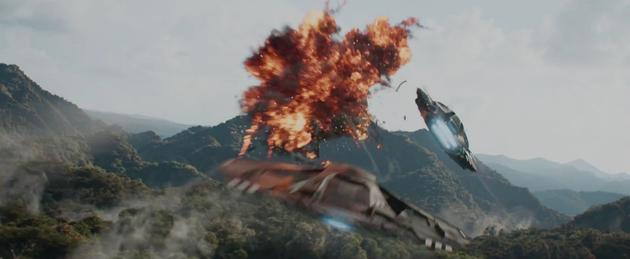 一段瓦坎达上空,黑科技VS黑科技的飞行器空战,非常燃!