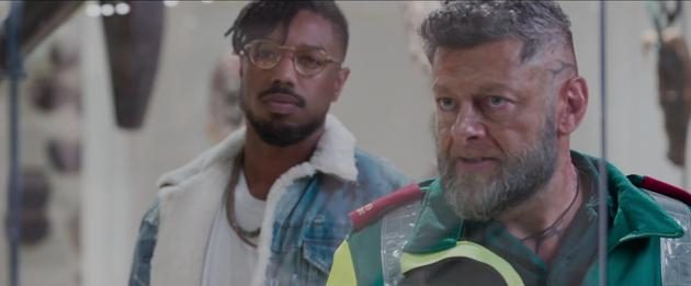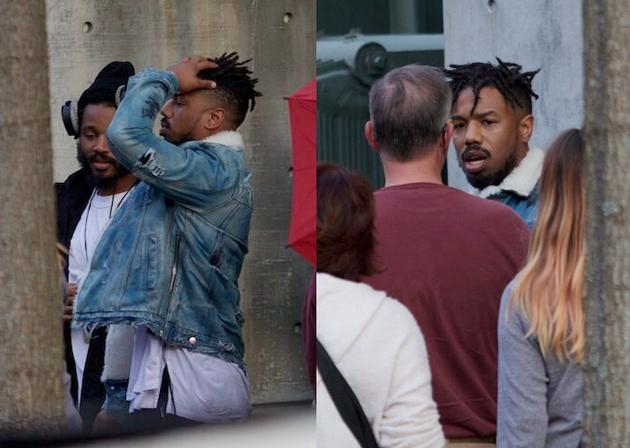 此前这一段被拍到过片场照,当时Killmonger演员迈克尔·B·乔丹以这一身打扮出场时,我还真以为是演员私服,不是片中造型,因为还蛮像他本人的穿衣风格,而很不像电影。