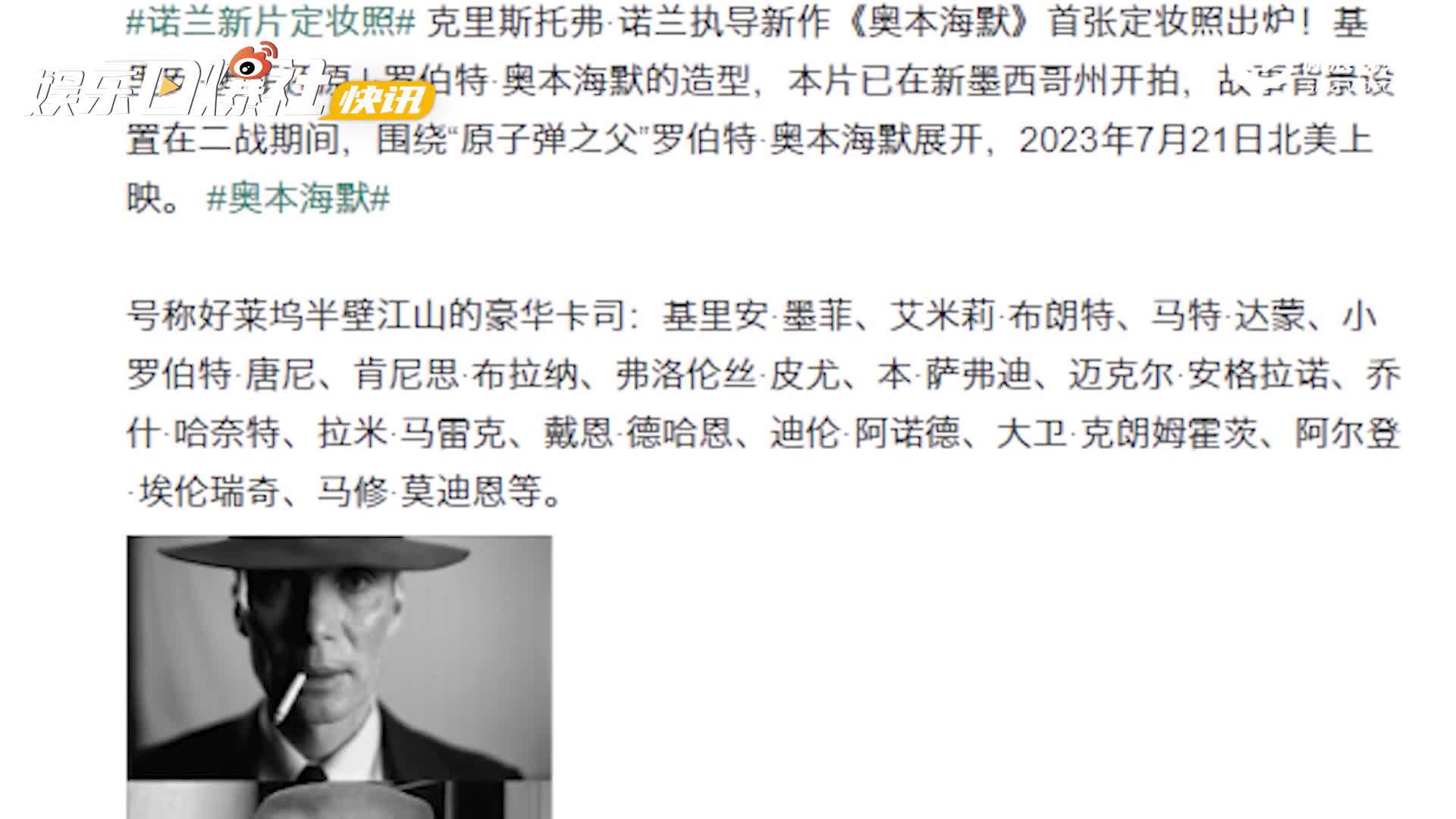截止到现在,《奥本海默》的卡司阵容已经包含有基里安·墨菲、艾米莉·布朗特、马特·达蒙、小罗伯特·唐尼、弗洛伦丝·皮尤、拉米·马雷克、本·萨弗迪、乔什·哈奈特、戴恩·德哈恩、肯尼思·布拉纳、杰森·克拉克、大卫·达斯马齐连、詹姆斯·达西、加里·奥德曼等演员,故事背景设置在二战期间,围绕“原子弹之父”罗伯特·奥本海默展开,明年7月21日北美上映。
