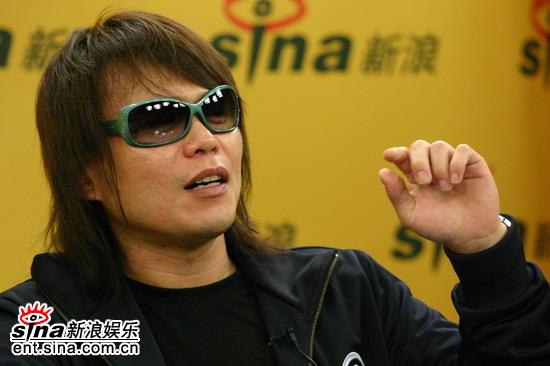 图文:伍佰做客新浪聊新专辑--个性绿框墨镜