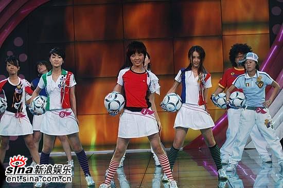 新浪娱乐讯 2006年6月9日(星期五)晚20:30,湖南卫视现场直播2006快乐中国超级女声杭州唱区10进7晋级赛,新浪娱乐全程视频图文直播本场比赛,杭州10强朱雅琼、唐笑、张媛、郝菲尔、尹林光子、张焱、孙闻雍、Reborn组合、董玟莹、翟梦角逐超级女声杭州7强,金鹰网(www.hifly.tv)授权新浪娱乐视频直播。图为:10位选手抱球上场。王建庆/图