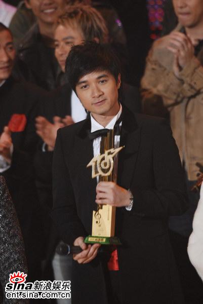 图文:十大劲歌金曲奖金奖--古巨基秀金奖奖杯