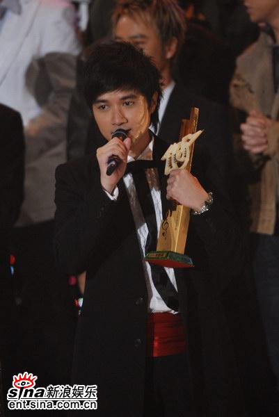 图文:十大劲歌金曲奖金奖--古巨基手握奖杯