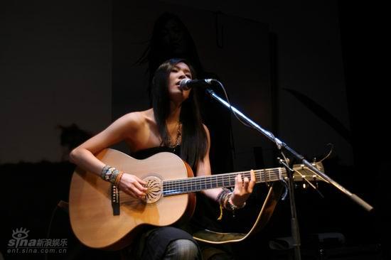 图文:张悬上海小型音乐会--穿低胸装锁骨突显