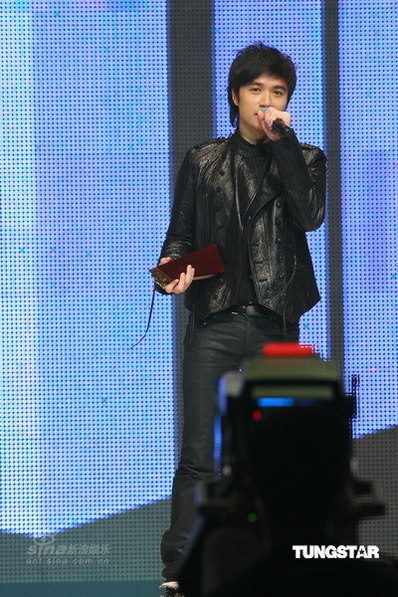 图文:古巨基获叱咤歌曲奖--皮装亮相演唱