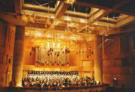 中山音乐堂 地理位置: 天安门西侧中山公园内 相关介绍: 中山音乐堂座落在松柏森森,亭古廊长的皇家古典园林——中山公园内,它东眺天安门,西毗中南海,南望天安门广场,优越的地理位置与独特的人文环境更映衬了神圣音乐殿堂无尽的魅力。其所在的中山公园原名社稷坛,是世界上最大、最完整的古代宫殿建筑群——紫禁城的一部分,音乐堂也因此被海内外音乐人士誉为“中国古代园林中的音乐宫殿”。 中山音乐堂在北京市委、市政府的大力支持下,始建于1942年,走过了半个多世纪风风雨雨的中山音乐堂旧貌换新颜,今天新落成的中山音乐堂所展现给世人的已是一座占地3720平方米,总建筑面积达11800平方米的大型现代化建筑,一座融汇中外不同建筑风格与当代科学技术为一体的多功能、国际化音乐厅。 中山音乐堂大堂占地600平方米,高8.5米,局部二层,屋顶和地面呈平面放射状扇形,墙面、柱子、地面均由金花米黄、银线米黄等高级石材铺装而成,墙面在顶部艺术造型光带水晶吊灯及壁灯的照耀下显得金碧辉煌。迎面回马廊下2.5米高、25米长的巨型汉白玉浮雕展现了《自然旋律生命》的主题,浮雕采用现实与浪漫主义相结合的表现手法,将中西音乐文化贯穿始终。 中山音乐堂能容纳1400人的演奏大厅整体面积1800多平方米,高度14米,全部由乳白色大理石镶嵌铺装而成,豪华秀丽,气派非凡。舞台宽23米,深14米,台口两根1.9米粗、13米高的金黄色的通天圆柱,气势宏伟,舞台后区设四层升降平台,每层升降平台长14米,宽1.8米,前区设有一个钢琴升降平台,后墙安装的是目前国内第二大的管风琴。为了使听众获得最佳的视听感受,工程建设者们不辞辛劳,在舞台顶部悬挂了15块有机玻璃反声板,具有良好的反射和扩散效果。因音乐堂特有的建筑声学需要,厅内墙面为高级木装饰套拼金花米黄大理石,局部镶嵌汉白玉浮雕,座椅为硬木质靠背上嵌红色软包织物,既美观舒适,又在最大限度的范围内解决了吸音干扰。精巧的设计使这里的音响效果堪称国内一流,经中国社会科学院声学研究所鉴定,演奏厅的声学指标接近维也纳金色大厅。 此外,音乐堂的观众席共分三层,一层楼座为放射形,三层上下重叠,中间二层为五个相同的包厢。从后向前观众座椅为三层阶梯形。一层观众席设782个座位,两侧各有三个入口;二层设有五个欧式风格贵宾包厢,每个包厢前后两排共有8个座位,为您提供最优质高贵的服务;三层观众席设有586个座位。这里良好的视野设计使您无论身在何处均能一览舞台无余。 具有现代化多功能服务设施的中山音乐堂还设有星级标准的贵宾室和能容纳二百五十人的会议室,为不同规格的会议提供优质的服务。能容纳一百五十人的电影厅则为您提供了欣赏中外影视作品优越的条件。轻松舒适、富含音乐韵味的咖啡厅更是您休憩娱乐的好去处。 |