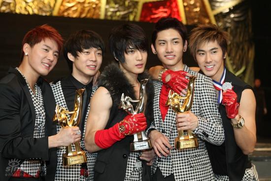 图文:金唱片颁奖精彩瞬间-东方神起得意秀奖杯 新浪娱乐独家图片 2008.12.1021:58 关注 新浪娱乐讯 12月10日17时(北京时间),第23届韩国金唱片大奖颁奖礼在首尔奥林匹克公园奥林匹克大厅举行。新浪娱乐全程图文直播。图为韩国金唱片颁奖礼上的精彩瞬间。娃娃发自韩国站