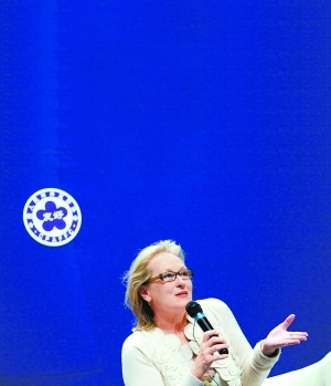 17日,刚到北京的梅丽尔·斯特里普就参加了首届中美文化艺术论坛在国家大剧院举办的“电影与表演:演员的视角”主题讨论,和葛优、刘烨两位中国演员展开了一场关于表演艺术的交流。她被葛优独特的幽默逗得开怀大笑,也和刘烨一起回忆起共同拍摄电影《暗物质》时的感受;还主动和大家分享了她在家庭生活方面的感受。