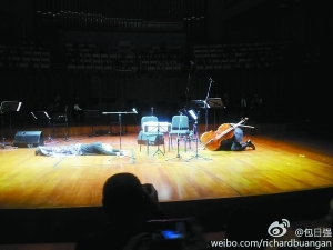 18日晚,首届中美文化艺术论坛在国家大剧院(微博)举办了一场名为“音乐对话”的音乐会。这台以著名大提琴演奏家马友友为主,汇聚了吴桐、刘林、陈雷激、杜聪等中国音乐家和美国布鲁克林骑士乐团,以及首席达米恩沃·策尔等中美艺术家的精彩音乐会中,一袭长裙的梅丽尔·斯特里普翩翩登场,令在场观众惊喜轰动。在马友友低沉、优美、婉转的大提琴配乐中,斯特里普以其充满魅力的声音朗诵起《致艾格尼斯·德米尔的一封信》,深厚扎实的台词功底和语言表现力,带给人美妙的艺术享受,也赢得了观众们狂热的掌声。意外的是,斯特里普先是双手合十、然后弯腰鞠躬、接着单膝下跪,随之双膝叩拜,最后竟全身趴下、以“五体投地”的膜拜形式向马友友表示崇拜。一手还支撑着大提琴的马友友也忙不迭地以同样的一系列大礼向斯特里普“还礼”,最终,两位世界顶尖艺术家竟然在观众们的掌声和笑声中双双伏地、平趴在国家大剧院音乐厅的舞台上,在场无不动容。