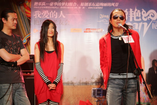 新浪音乐讯 12月19日,亚神音乐旗下乐队“艳乐队”推出了自己蛰伏三年之后的专辑《惊.艳》。并在三里屯男孩女孩酒吧举办了“我爱的人——艳乐队老友会”。在活动中,艳乐队的老朋友们如郑钧(blog)、高旗、峦树、景岗山(blog)、李延亮、郭涛(blog)一一登台祝贺,零点乐队的主唱周晓鸥也在主持人的“逼供”下承认了他和艳乐队主唱唐平的恋爱关系。
