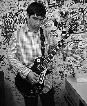 1994年9月18日,大阪的quattro俱乐部后台,此图取自摄影师Paul Slattery的影集《绿洲乐队——路上的一年》,这本摄影集涵盖了几乎所有绿洲乐队1994 年到1995年在美国、英国、日本的巡演细节。