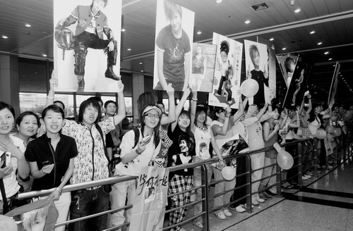 昨晚,2005年超女冠军李宇春为拍摄其新歌《冰菊物语》的MTV,从北京来新疆取景。很多外地的玉米粉丝团早已在网络上了解到了春春的此次行程,所以特意从各地赶到乌鲁木齐,和新疆玉米一起迎接春春的到来。很多脸上贴着春春照片的玉米昨日一早就来到乌鲁木齐国际机场,执著地等候春春的到来。大多数玉米都身装黄色T恤,手捧鲜花,高举春春的海报,并整齐地喊着“李宇春,亚克西,新疆玉米欢迎你!”现场的玉米大多数是十几岁到二十几岁的年轻人。
