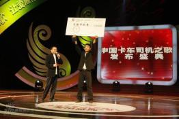 在著名老艺术家李光羲先生一曲《祝酒歌》之后,晚会的气氛进入高潮,最激动人心的《中国卡车司机之歌》金奖即将诞生。随着原创中国网创始人李继宏先生宣布:“获得中国卡车司机之歌征集活动金获奖者是——《中国卡车司机之歌——海阔天空》,作词,焦裕鹏,并获得10万元奖金!”,金奖歌曲由著名歌星尹相杰(听歌)的倾情演唱,台下观众爆发出热烈的掌声。颁奖嘉宾大众音乐协会主席张丕基、陕汽集团董事长方红卫共同为焦裕鹏颁奖。