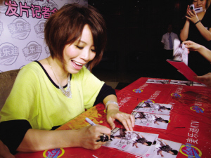 新报讯 在去年签约福茂赴台潜心学习后,“超女”黄雅莉今日终于交出新作。前日,她带着最新专辑《雅莉不怕》在麦乐迪KTV签售。