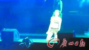 张靓颖海心沙“晕倒” 激情跪地甩头突然摔倒