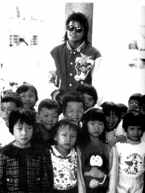 迈克尔·杰克逊与雍陌村孩子的两张合影,后来出现在他的自传中。在刘广志传阅给记者的照片上,年轻的歌王与村里十多个可爱的小孩子一起,无拘无束,露着甜甜的笑脸,仿佛就是一个孩子王。在一张图片的下方,杰克逊写的图片说明是:“我无法抗拒孩子们的吸引力·1987年摄于中国。”